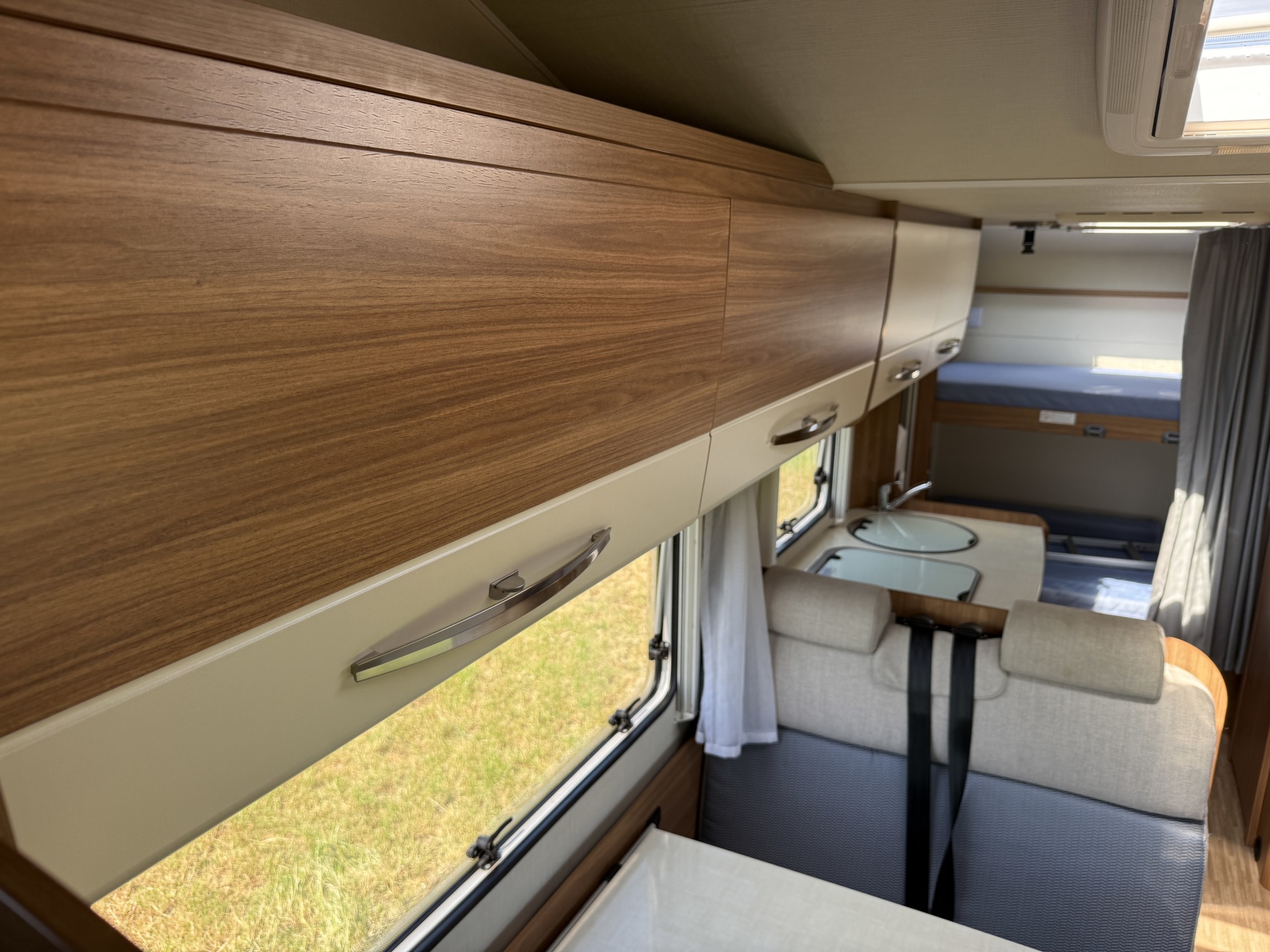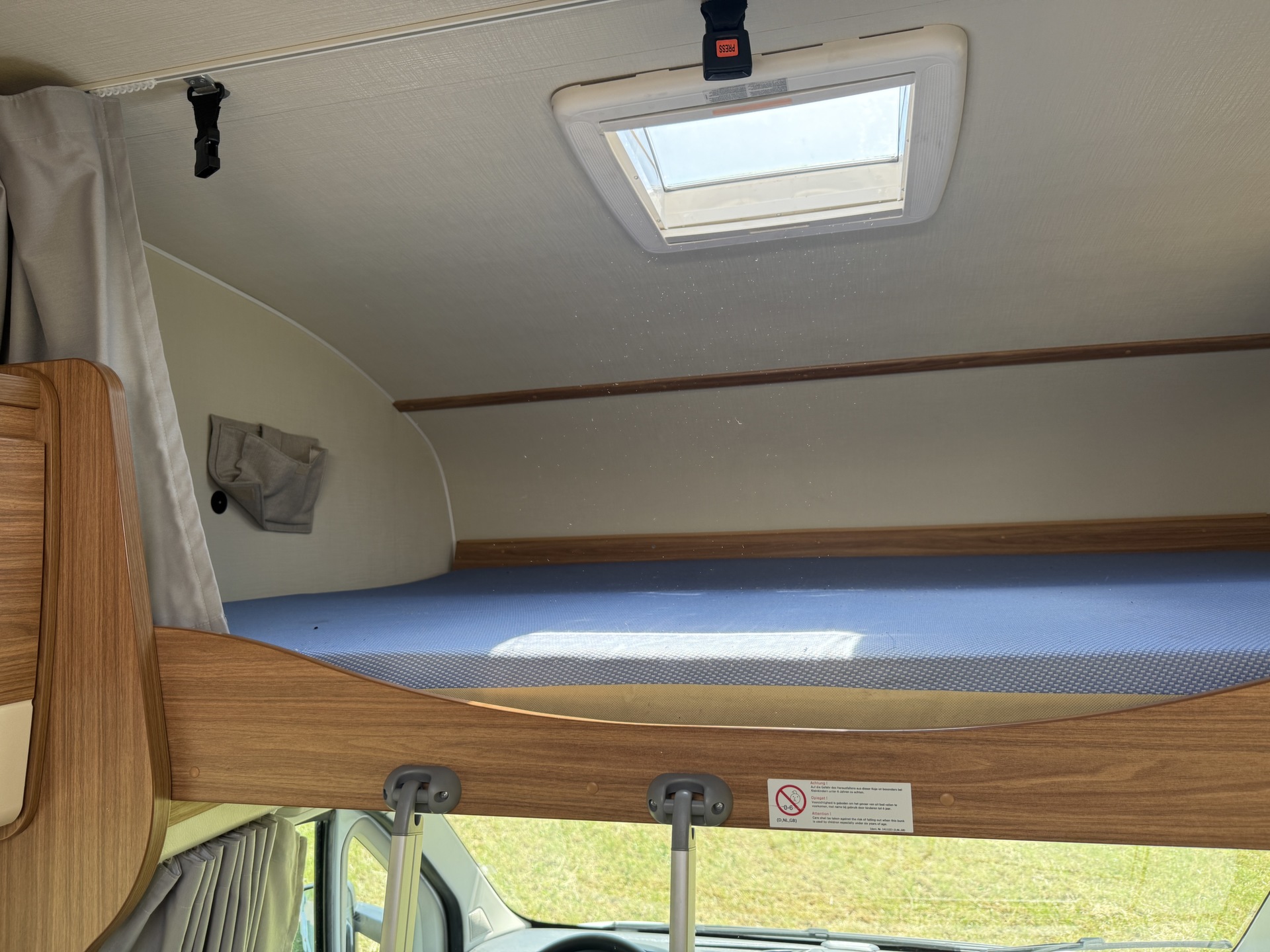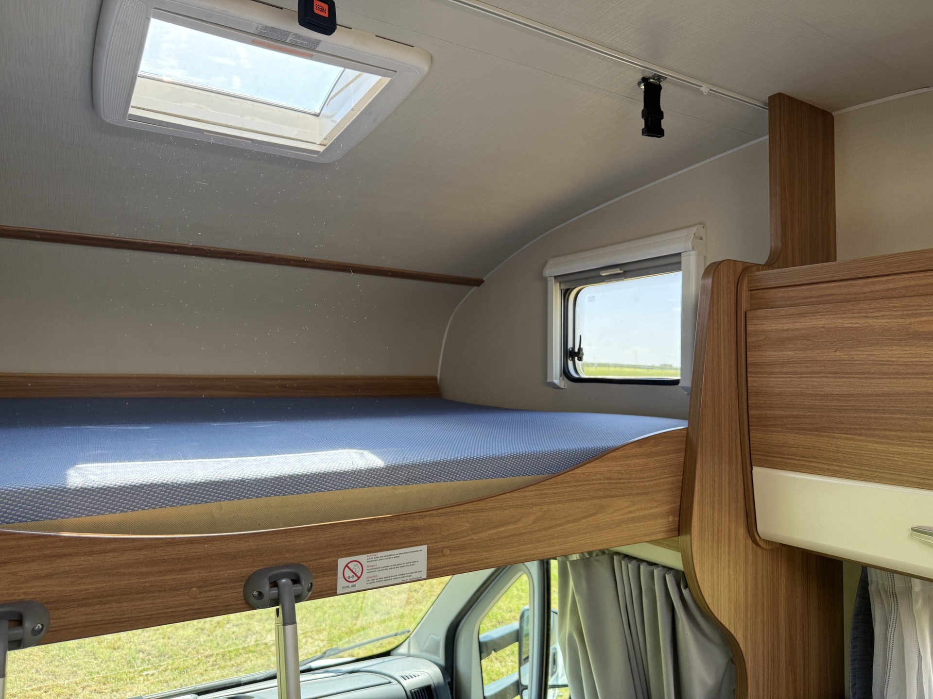 In deze camper is een volledige inventaris aanwezig voor maximaal 7 personen. Neem dus een kussen en slaapzak mee en gaan! 2 personen kunnen voorin zitten, achter de bestuurder is een dinette of 1 persoons bed. Boven de bestuurder is een 2 persoons bed aanwezig en ook de 4 persoons dinette achter de bijrijder is in no time omgebouwd tot nog een ruim 2 persoons bed. Daarnaast heeft deze camper achterin een stapelbed.