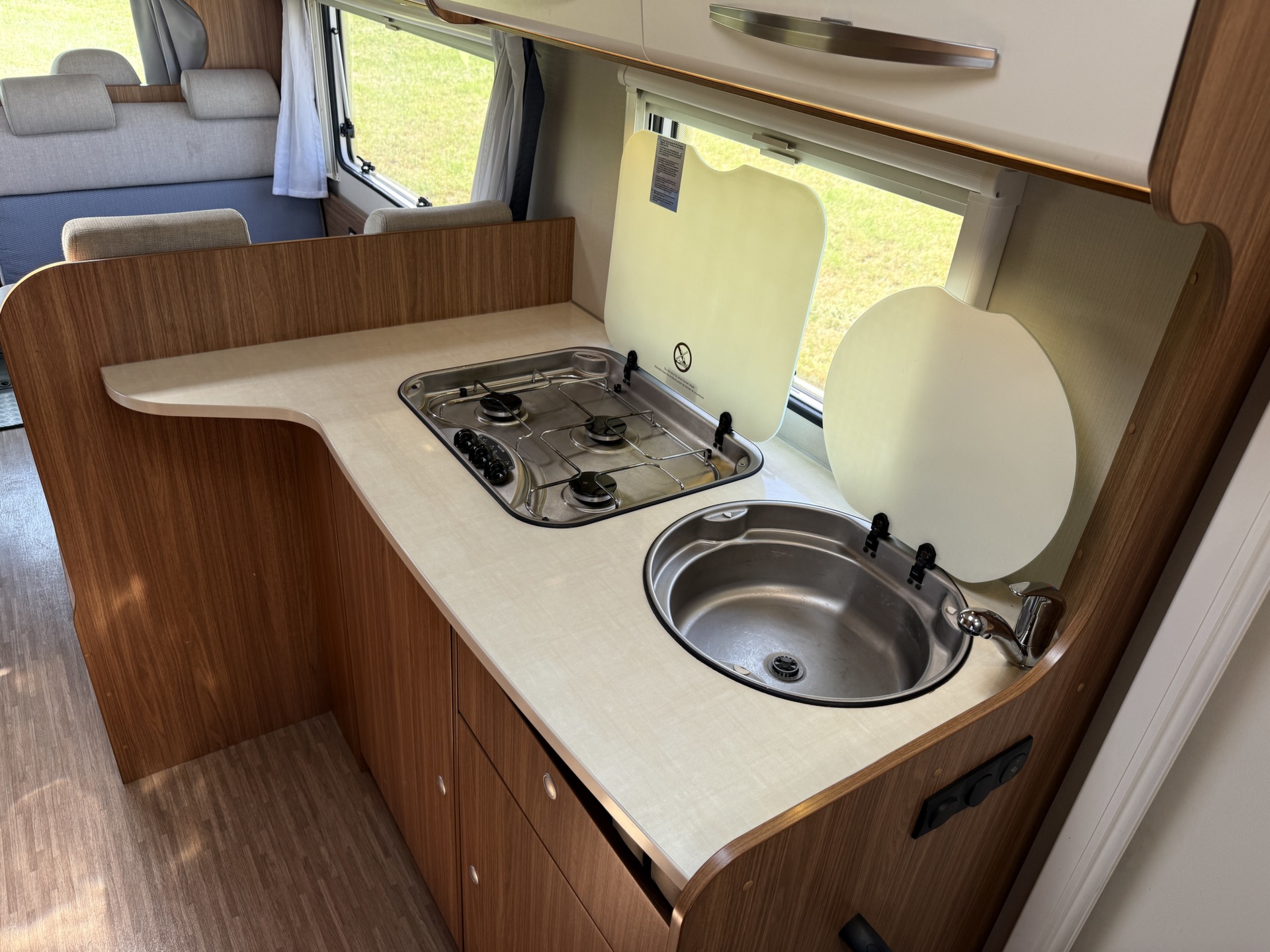 - Keuken met 3 gaspitten en wasbak met waterkraan